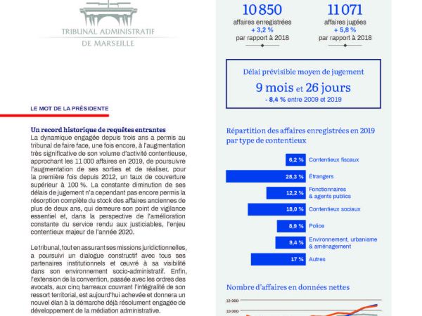 Bilan d'activité 2019 du tribunal administratif de Marseille