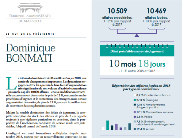 Bilan d'activité 2018 du tribunal administratif de Marseille